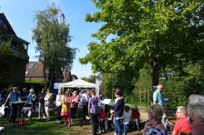 • Die gesponserten 9 Obstbäume, die auf Grund der Trockenheit im Frühsommer nicht eingepflanzt werden konnten, haben jetzt ihren Platz auf einer Freifläche am Rossiniweg gefunden.