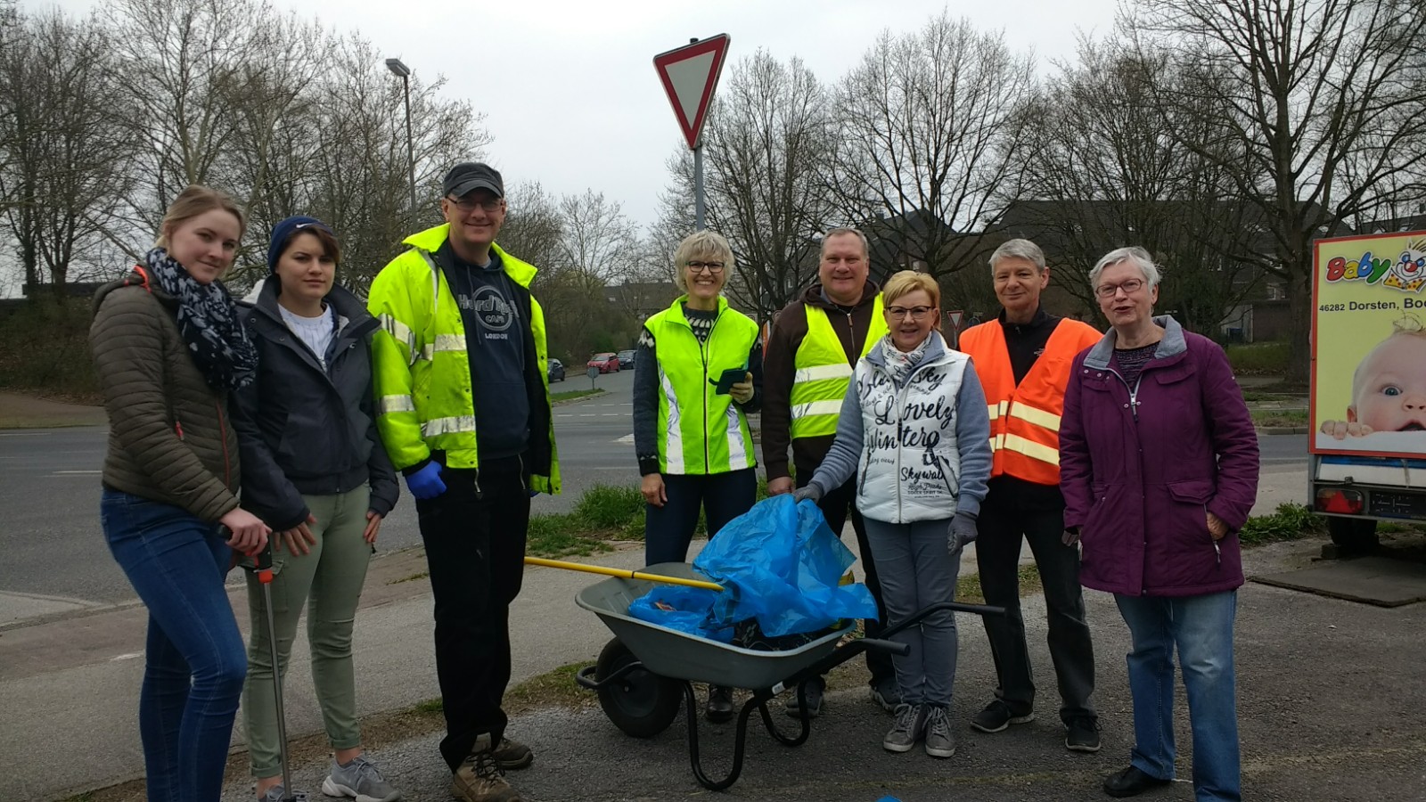 Insgesamt beteiligten sich über 2800 Bürger*innen in diesem Jahr. Neun Bürger*innen aus dem Stadtsfeld reinigten in Absprache mit der Stadt am 23.03.2019 den Grünstreifen entlang der Marler Str. bis zur Schleusenstr. Mit voller Besatzung ging es anschließend zur Besenparty.